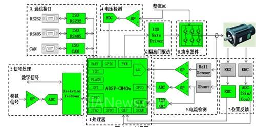 伺服与电机驱动器设计人员需要高度精确的闭环控制以改进产品的能效和性能。全新 ADSP-CM40x 系列混合信号控制处理器集成业界独一无二的嵌入式双通道 16 位 ADC,精度高达 14 位,同时还集成 240 MHz浮点 ARM® Cortex™-M4 处理器内核。除模拟转换性能和 380 ns 转换速度外,ADSP-CM40x 还提供一系列其他特性,如全 sinc 滤波器,可实现与隔离式 Σ-Δ 调制器 ( AD7400A/AD7401A ) 的直接接口,可用于分流检测系统架构中。由于片内集成 sinc 滤波器,因此可省去 FPGA 实现同样功能所需的成本和工程资源。