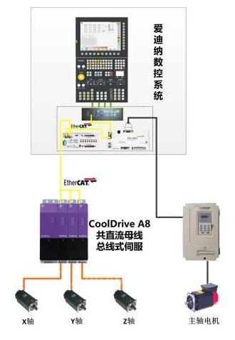 CoolDrive A8伺服驱动器是清能德创电气技术(北京)有限公司(以下简称清能德创)最新推出的国内首款网络化模块化伺服驱动产品,融合了共直流母线、能效管理、功能安全,多轴同步等多项创新技术,为客户提供更节能,更灵活,更安全的伺服系统。本文主要介绍CoolDrive A8高端伺服系统作为进给驱动在立式加工中心上的应用。