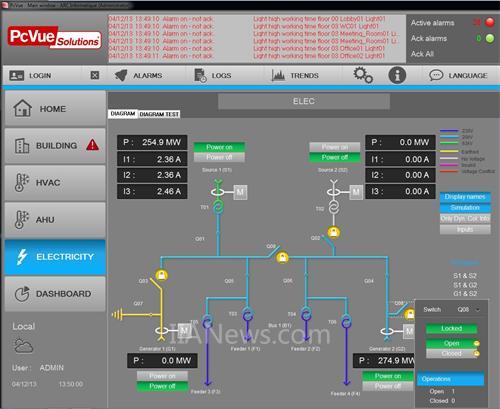 PcVue®11还拥有集特定领域的库,如BMS(换热器、空气处理系统、加热系统、照明等)和配电系统(断路器、故障检测、动态着色等)。