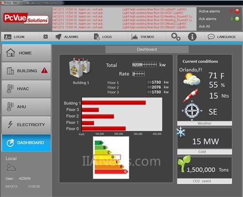 PcVue®支持BACnet ®和LON ®楼宇自动化和控制网络通信协议。它还支持所有标准的IT技术,如OPC客户端/服务器、SNMP、SQLServer、WindowsServer和虚拟化技术(VmWare®和Hyper-V®)。PcVue®11是一系列应用,包括楼宇管理系统、能源管理系统、电力生产和分配、可再生能源、工业、基础设施、交通和水处理及供水领域的理想解决方案。