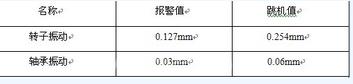 格尔木300MW燃气电站汽轮机系上海汽轮机厂生产,汽轮机型号:LZN55-5.6/0.65。下表是格尔木300MW燃气电站转子振动值与轴承振动值的相关参数。