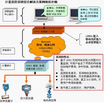 ◎ 基于GPRS或CDMA无线网络实现大范围内管线运行状态监测,为用户省去了昂贵的网络建设和维护费用,实时性高,组网费用低;