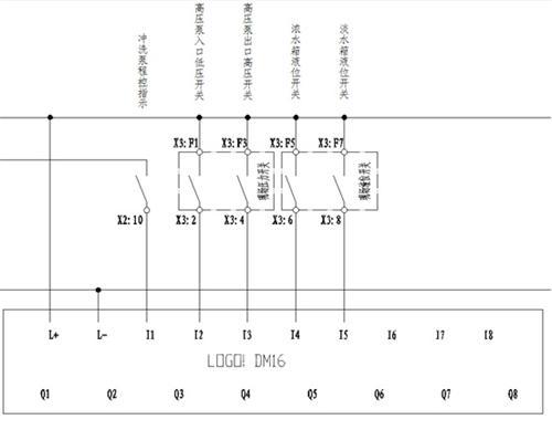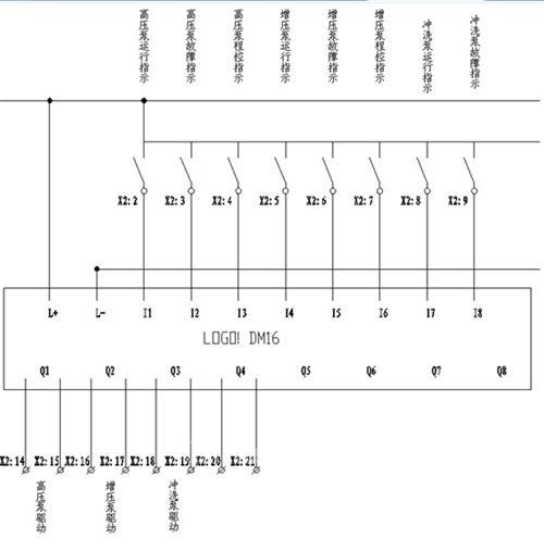 1、电气控制原理如图4至图6,系统硬件组成包括LOGO!12/24RC一块,I/O扩展模块DM16两块。