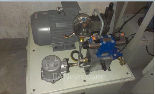 b. 松开:油泵电机启动,松开阀得电,液压站往油缸前腔供油,活塞杆带动压紧板后退,滤室被打开,开始卸料,当压紧板接触到松开限位开关、后,压滤机自动停止