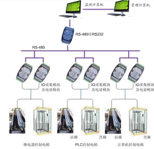 系统采用RS-485通讯标准,均有较强的抗干扰能力。其传输介质为双绞线,具有成本低、铺设使用方便、传输距离远等特点。电梯控制系统主要由计算机控制、PLC控制、继电器控制3种类型,电梯工作状态的监测与现场数据采集有以下3种方法:
