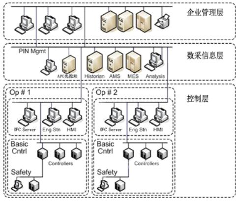 从总体结构上来讲,工业系统网络可分为三个层次:企业管理层、数采信息层和控制层。企业管理层主要是办公自动化系统,一般使用通用以太网,可以从数采信息层提取有关生产数据用于制定综合管理决策。数采信息层主要是从控制层获取数据,完成各种控制、运行参数的监测、报警和趋势分析等功能。控制层负责通过组态设汁,完成数据采集、A/D转换、数字滤波、温度压力补偿、PID控制等各种功能。