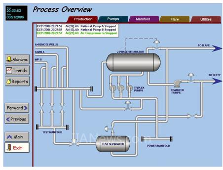 该炼油厂并没有现代炼油厂上拥有的先进操控技术。 其中最需要关注的是厂内的紧急停车系统(ESD)。它能在第一秒钟暂停所有机械与系统,使事件造成的危害降到最低。此外,石油价格迅息万变,因此降低停机时间以提高生产是很重要的事情。 InduSoft 所面临的挑战是消除停工的机会和为ESD安装可靠、有效、易于操作与维护的控制系统。