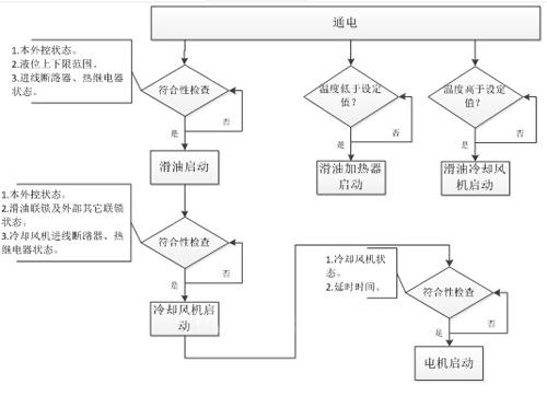 与滑油启动程序类似,区别主要是在外部联锁不符合要求时,冷却风机自动停止。