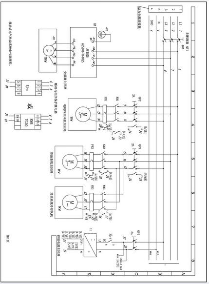 在本控状态下,按下柜门滑油启动按钮,开启滑油装置,给增速齿箱供滑油,在滑油流量、压力符合联锁条件时,输出联锁开关量给是电传装置,再按下冷却风机、电机启动按钮,冷却风机首先启动,延时0.5S后,输出开关量控制ABB变频器,启动电机,柜门电位器用于控制电机转速,在异常情况下,按下柜门紧停按钮。