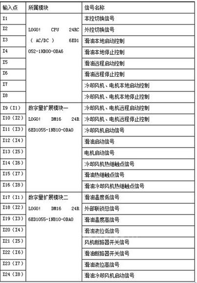 据据方案需求和原理设计,对LOGO! 控制器的I/O点分配见表1和表2。