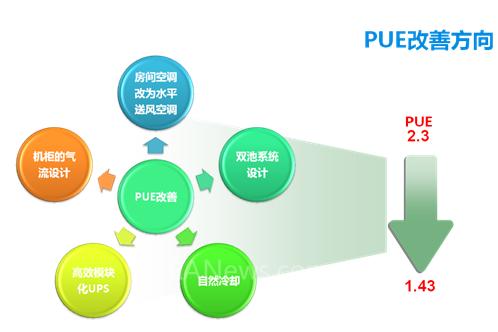 根据以上耗电系统分析,PUE主要的改善方向如下: