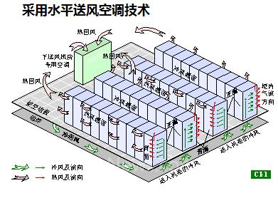 由于水平送风空调安装在机柜旁边,就近送风和制冷,解决地板下送风风阻导致的局部热点问题;