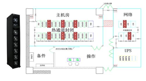 为了提升制冷效率,提高单机柜制冷能力,结合现场情况,使用冷热通道封闭技术为核心的IT设备进行冷却.通过改善空气循环的管理,提升制冷功率密度.有效减低PUE值,而设计一套散热效果好、安全可靠的机柜冷热池解决方案。主机房机柜采取背对背摆放,网络机房采取面对面摆放