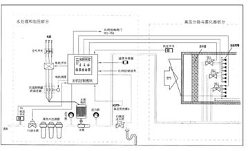 高压微雾系统因为无需向外排水,所以没有任何水垢的问题,水的前端处理系统比如纯水机、软化水设备等都可以自动运行,并安装有排水管道的工作间或洗手间内。