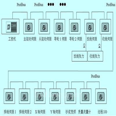 多线切割机控制系统由以下部分构成:工控机和伺服驱动装置包括主伺服驱动、从伺服驱动、导轮伺服驱动及收放线伺服和排布线伺服,砂浆供给变频器、质量流量计和其他的传感器和执行机构等组成。