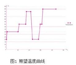 在感应加热,红外加热和电阻加热等加热方式中,对叶片模具加热来说,电阻丝加热具有元件经久耐用、维修更换方便、操作简单、成本低廉等优点。电阻丝加热就是在模具的玻璃钢层中预埋加热电阻丝,加热电阻丝铺设在模具加热层(树脂+铝粉)之下[3]。电阻丝加热方式虽然应用较普遍,但是随着风力机组容量的增长,风力机叶片的尺寸随之增大,兆瓦级大型风力机叶片模具的加热系统具有划分区域多且复杂的特点,在这一背景下,基于电阻丝加热方式的模具加热系统就显得缺乏可靠性,温度不易控制,易出现局部温度过高的现象,因此对于叶片成型模具的温度控制系统就提出了更高的工艺要求。具体言之,对于兆瓦级大型风力机叶片模具而言,一般情况下要求模具型腔内加温能力至少为80℃;模具型腔恒温控制精度为±2℃;模具型面温度偏差不大于4℃(指模具温升动态过程)。成型过程的期望温度曲线如图1所示。