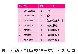 该系统采用16通道输出控制模块cj1w-od211通过g3na-410b型固态继电器分别控制各单区电阻加热丝的通断。g3na-410b型固态继电器可适用的输出负载为240-480vac,可以满足系统工作电压的要求。该多路温度控制系统的主要控制元件选型清单见表2。所配备的控制装置最多支持68个单回路的温度控制。