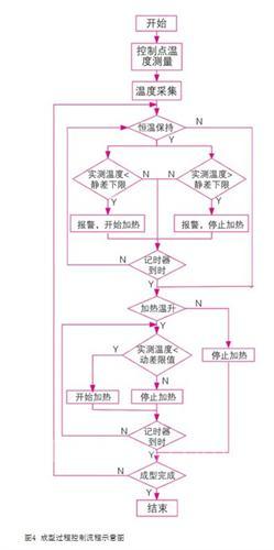 由于对所有单回路都要实时保持着准确的测量、pid控制和良好的人机对话接口,所以必需要有一套合理的控制算法。对于图4中所示的控制流程通过定义相应的运行策略来实现。对于每一路的电阻丝加热或冷却进行单独控制的时间循环通过设计如下的循环策略并编写脚本程序实现,当控制点初始温度小于所处阶段的加热阀值时,启动加热;当实测温度值达到该阶段的加热阀值时,相应的固态继电器断开,停止加热。模具的保温主要通过运行报警策略控制电阻加热丝的开关得以实现。
