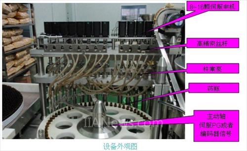 伺服的灌装要和主动轴速度保持同步,主轴送瓶速度快灌装伺服的速度也要快,伺服要有判断功能,当检测到没有药瓶时相应的灌装伺服不动作。