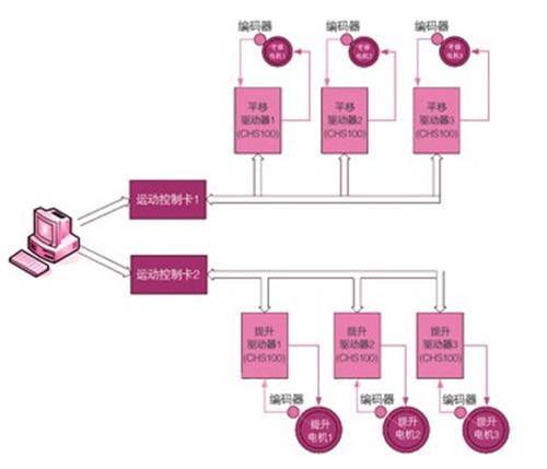 如图1所示,系统中含有六套伺服系统,即六个chs100伺服驱动器和六个chm伺服电机: