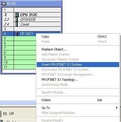 第3步,在CP343-1的右键中选择“插入PROFINET IO系统”,如图3-3所示:
