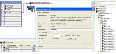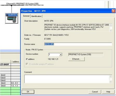 第9步,配置IM151-3PN的属性,分配设备名,本例就为“IM151-3PN”;设备号码本例配置为“1”,Step7会自动分配,当你有2个以上的远程IO站时,设备号码不能重复,否则无法编译通过;设备的IP地址是由Step7自动分配的,你也可以手动指派IP地址;如图3-9所示: