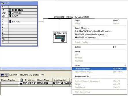 第6步,选中PROFINET IO总线,然后右键菜单选择“目标属性”,如图3-6所示: