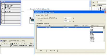 第8步,配置IM151-3PN的更新时间,这个更新时间是根据设备的性能决定的,性能好的设备更新时间可达1ms,有的厂商提供的PROFINET IO设备最多也只能有8ms的更新时间,如图3-8所示: