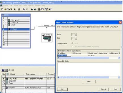 第2步,在硬件组态中插入一个CP343-1,新建一个网络连接Ethernet (1),并且配置IP地址,如图3-2所示: