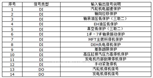 以300MW机组的ETS为列,输入输出信号清单如下: