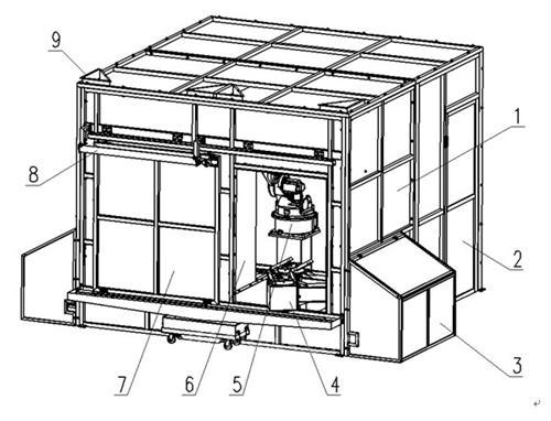 1工作间主体 2维护门 3转臂护罩 4转臂及转台