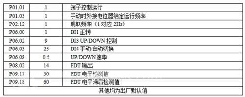 聚氯乙烯等基料经过螺杆加热匀速挤出,再经由真空吸塑,然后由牵引电机匀速地牵引,再由气动手臂裁剪成不同长度。牵引电机由变频器来控制,牵引的快慢,决定着产品的好坏。一般在真空吸塑出来的部分安装有一个光电传感器,传感器根据信号的有无输出高低电平(不同类型的传感器输出信号可能不同)到变频器,变频器经过计算和判断,对输出频率做出相应的调节。控制分手动和自动。开机生产时,先将开关打到手动,由外接电位器控制牵引电机的速度,准备就绪后将开关打到自动,此时,如果光电传感器检测到有(没有)物体时发出一个低(高)电平给变频器,变频器经过计算和判断,在当前输出频率的基础上加(减)2Hz,接着开始UP(DOWN)上升(下降),在UP(DOWN)的过程中,光电传感器没有检测到物体时输出一个高电平给变频器,变频器经过计算和判断,在当前输出频率的基础上减2Hz,再开始DOWN下降,当UP(DOWN)的时间超过设定的时间后继电器动作输出信号,由此循环不已。要求跳跃频率、UP/DOWN超时的时间、UP/DOWN速率均可以自由设置,以满足不同产品的生产工艺要求。要求变频器动态相应时间快,运行稳定。