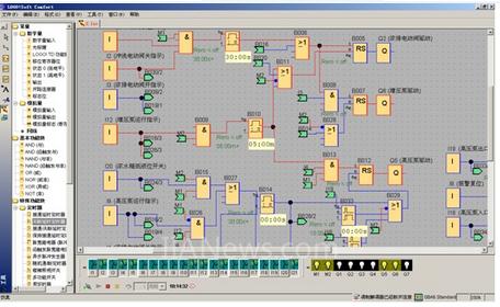 西门子LOGO!编程软件集成离线仿真功能,在程序下载前进行仿真测试能避免许多不必要的问题出现,仿真时可以进行断电测试,提高了系统的安全性。测试完毕后,将程序下载到LOGO!进行在线测试,如图12至图13所示,