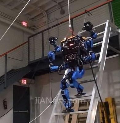谷歌公司表示,下一步“沙夫特”将从机器人设计比赛中退出,转向开发首款商业机器人。如图,这款机器人完成了“军事机器人-奥林匹克大赛”八项测试中的一项,成功攀爬陡峭的梯子。