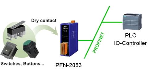PFN-2053是泓格开发的PROFINET I/O系列产品之一,提供PROFINET网络一个简易型远程I/O解决方案,主要目的是可以当作PROFINET网络上的一个从站设备。可与其它PROFINET IO控制器搭配使用,它提供16通道非隔离型的数字量输入,并针对静电干扰提供到±4KV的防护,可适用于各种不同的工业应用。