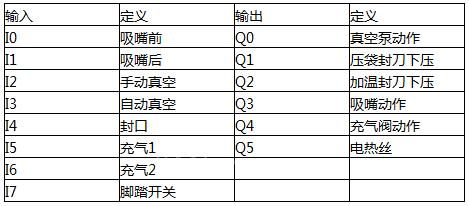 真空包装机具有四种功能档位:封口、手动真空、自动真空和充气。四种功能由旋转开关进行切换,切换时要求能够立即终止正在进行的功能,内部寄存器和输出需要必须复位,再开始新的功能过程。设备设置一个脚踏开关由触发过程输入控制。
