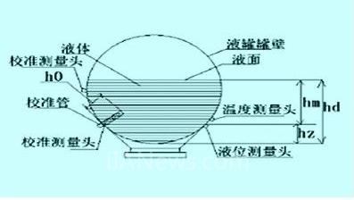 为了适应液体温度变化> ± 5 ℃或液体成分变化较大的场合,使测量不受液体温度和液体成分变化的影响,确保仪表的测量精度(± 0.2%F.S )。可在容器内加装校准管或校准器,用校准管内的液柱长度(见图)。因为校准管侧壁开有孔与罐内液体连通,所以校准管内液体温度、成分与罐内液体一样,而校准管内的液柱长度等于校准管长度(确定值 h0)。因此 a0,t0数值分别与罐内液体的 a,t 相等。于是由公式可以导出修正后的 hm。这样校准管就相当于一把标尺,只要不断地测量出当时的 y、y0 值,就可以计算出液面的精确测量高度 hm。这样测得的液面高度值 h m 不受液体温度和成分变化的影响。实际上就是不断地用校准管的长度对外测液位计进行自我校准,来保证高精度。