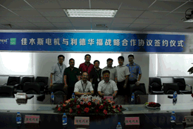 2014年6月27日,在第5会议室,利德华福与佳木斯电机股份有限公司签署了战略合作协议,协议实施后,利德华福将成为佳木斯电机成套事业部唯一指定配套商,并在市场方案、价格指导上为佳木斯电机给予必要的协助。佳木斯电机副总经理崔剑先生和利德华福公司营销系统总监张韧先生分别代表佳木斯电机和利德华福签署合作协议,并发表重要讲话,高度评价双方的合作。