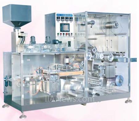 铝塑泡罩包装机是将透明的PVC 等塑料薄膜或薄片制成泡罩,然后用热压封合、粘合等方法将药品封合在泡罩和铝塑板之间,并且按设定的版长均匀切割成。