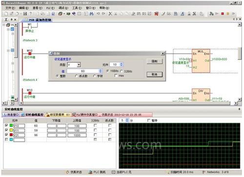 根据要求,用触摸屏做上位机,S16M0T控制固态继电器加热器,温度检测用PT100加温度变送器。温度波动要求不高,直接采用模糊温度控制FTC指令。