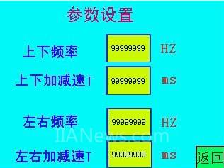 参数设置画面设置用来设定步进电机的运行速度和加减速时间