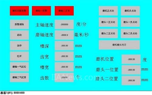(2)系统启动按钮,点击启动按钮之前必须进行正确的参数设置。例如:‘主轴5000磨轴50槽宽10齿宽1槽宽1齿数100’之后才可以点击启动按钮,若参数全为0时点击了启动按钮则需要点击停止按钮,再点击磨机磨头对刀按钮。重新输入正确数据,按启动运行