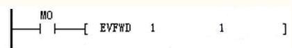 通讯协议采用MODBUS模式,EVFWD为正转,1为COM1通道(EC10只支持通道1),1为通讯地址,其值必须预先设定,与变频器通讯地址一致,“唯一”且不可覆盖。EVREV为反转指令,EVDFWD为正向点动指令,EVSTOP为停止指令。