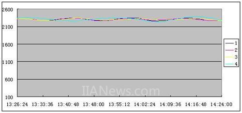 现在来试试输出控制的效果,控制对象是一台多区域控制的网带干燥炉的控制项目,要求同时控制4区温度,工作温度在225°左右,控制要求在±5°。利用空气对流加热不太好控制,滞后比较厉害,控制使用晶体管开关量输出点控制固态继电器,加热器由不锈钢加热管组成,温度控制部分程序非常简单就4条FTC指令就可以了,下图为监控的温度曲线。