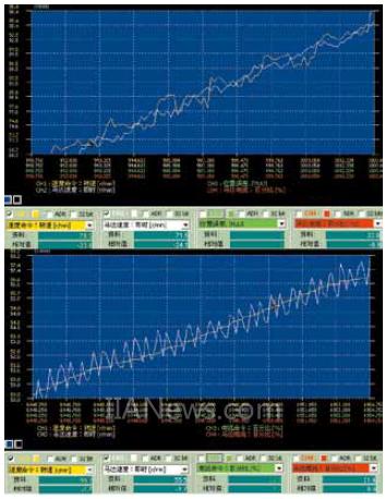 2、参数P1-59对模拟速度指令的线性滤波有很大的帮助。我列举以下修改P1-59=0和2的波形进行比对。如下图: