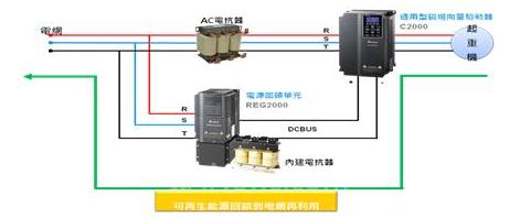 图3:台达起重系统采用REG2000取代煞车电阻,将位能转换为再生电力回馈电网