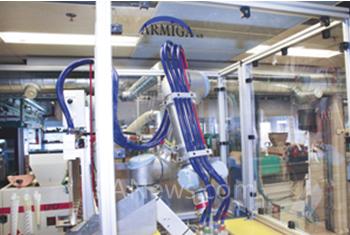 新型机器人可代替人类员工进行繁重的重复劳动,从而解放了一至两名先前须手工完成这一工作的员工。这些员工现在已被安排到了工厂其他的岗位上。由于工厂的包装装置上没有足够的空间来隔离机器人,因此部署协作机器人极大的简化了装置并降低了成本。