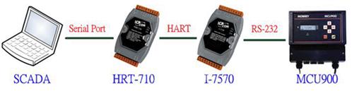 需求: 此MCU900的HART设备,硬件接口为RS-232,而软件通讯协议为HART协议,使用者想通过Modbus来整合设备信息至SCADA系统。