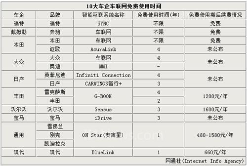 车联网技术成为汽车厂商拼科技的平台,近日,针对包括美系、日系、德系在内的10大车企车联网的免费使用年限以及超过年限后的费用情况调查发现,福特、奔驰以及本田三大品牌均不限时间免费使用,在需要续费的汽车品牌车联网中,通用安吉星选择性更强。