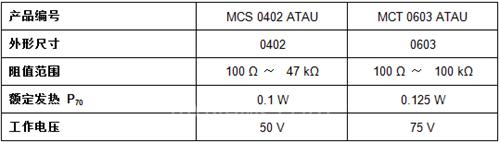 除了优异的高温性能,MC ATAU系列对恶劣的环境条件有极强的耐受能力,以及优异的耐潮能力,在+ 85℃和85%相对湿度条件下,lΔR/Rl <0.5%的性能可以保持1000小时。器件的电阻低至100Ω,最大额定发热功率为0.125 W。电阻通过AEC-Q200认证,可用于汽车应用。